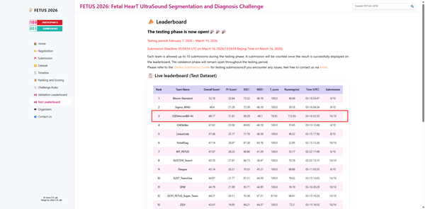 克日,,,, ,,,中国凯发·(中国)网站-AG旗舰厅重庆公司大数据和AI中心团队亮相生物医学成像领域国际学术聚会(ISBI2026)算法挑战赛,,,, ,,,与海内外众多高校、科研机构及企业团队同台竞技 。 。 。 。。经由强烈角逐,,,, ,,,团队在“胎儿先天性心脏病识别AI挑战赛(FETUS2026)”与“颈动脉斑块识别AI挑战赛(CSV2026)”中双双斩获季军,,,, ,,,相关效果受邀在英国伦敦聚会时代作现场报告 。 。 。 。。
